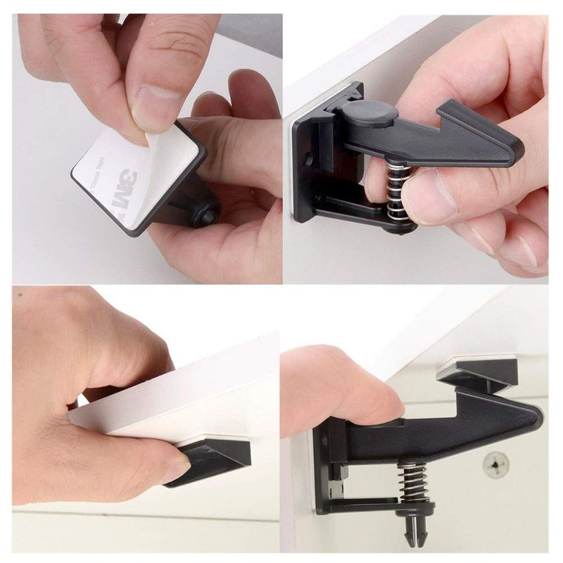 - EASY INSTALLATION AND REUSABLE - VMAISI cabinet locks are very easy installation with self sticking adhesive. Can reuse with extra sticker. Stainless Steel Screw Optional to fixed on Drawers or Cabinets that can not use adhesive or need stop adult to pull. Screw for dural protection.