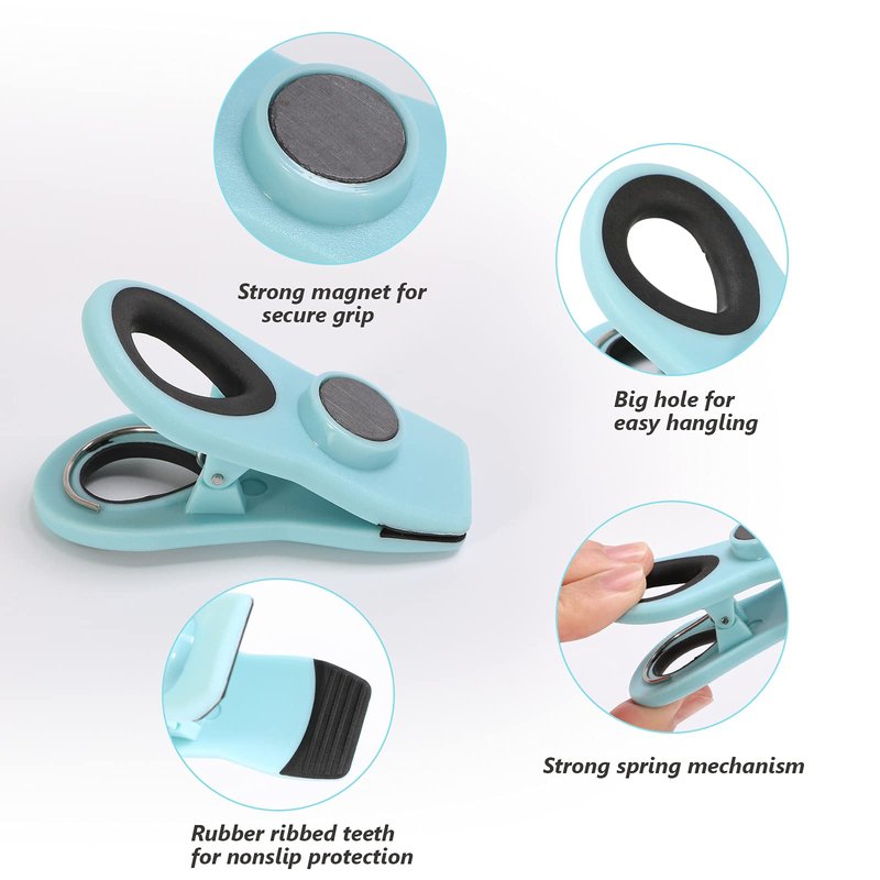 - 【Versatile Uses】: Secure food bags (chips, frozen veggies, snack, etc); post pictures, notes, shopping lists; organize mail, papers or file folders; hang up your kitchen stuff and so on. Just open your mind, and you'll find more than this uses.