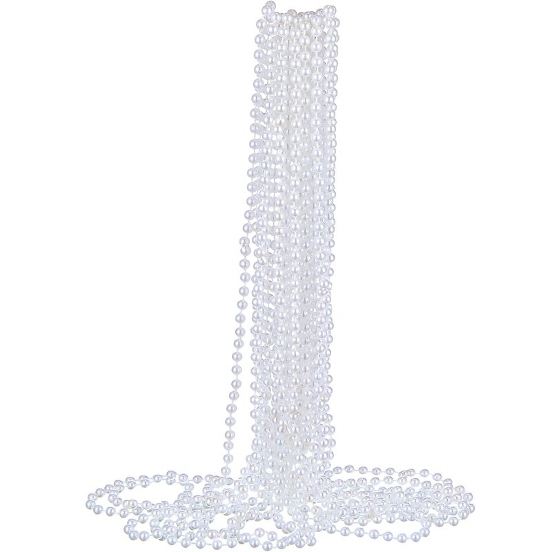 12 Pack Fake Pearl Necklace Costume Jewelry Long Faux Pearl Necklace Party Favors White Plastic Flapper Bead Strand for Kids Girls Women 1920s Wedding Bridal Shower Tea Birthday Decorations