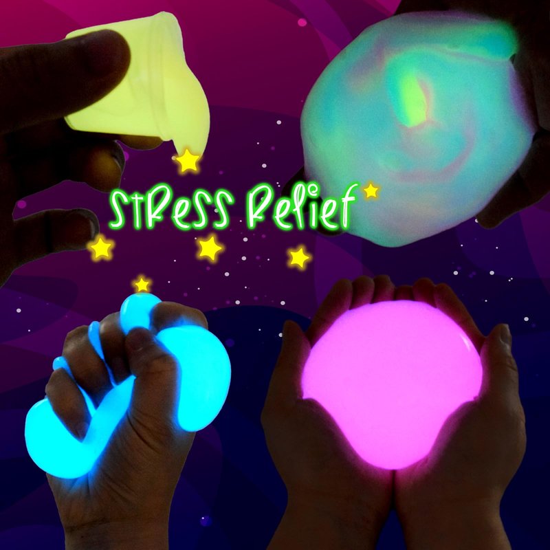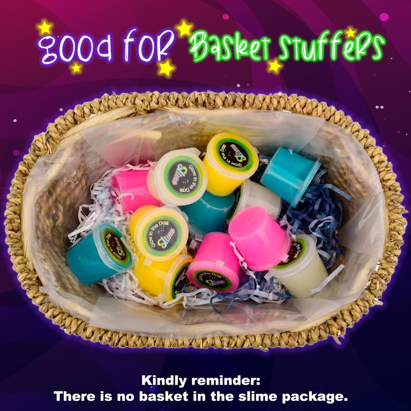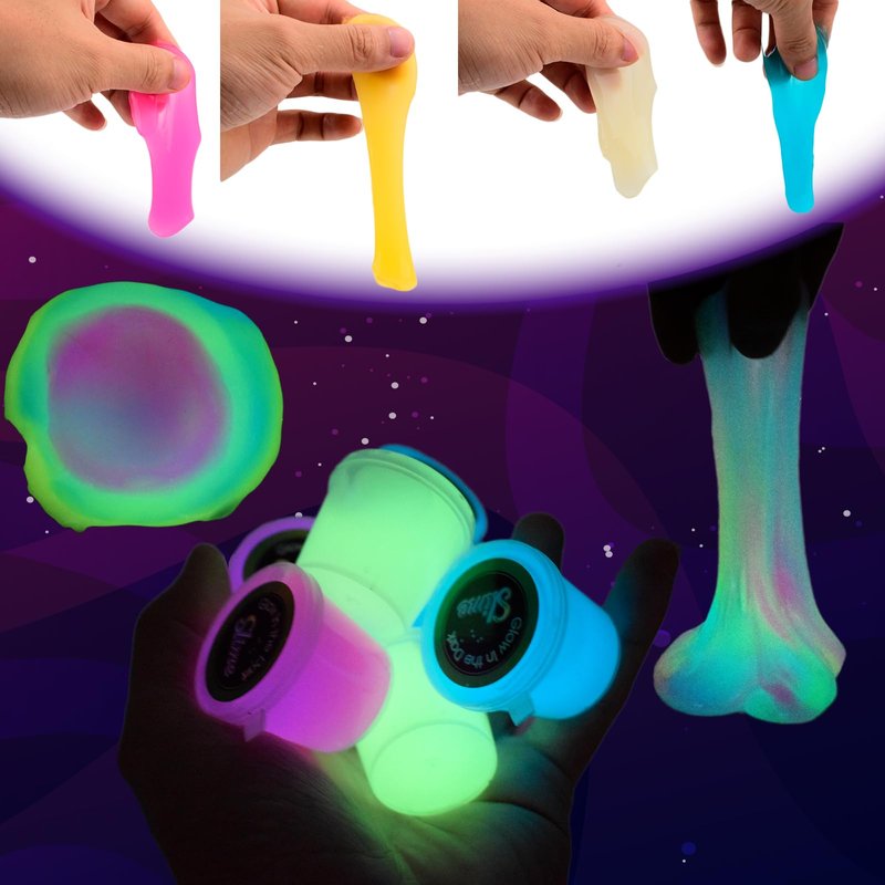 - 12 pack galaxy slime kit - Xmas Galaxy slime pack Glow in the dark for kids, 30ML*12. The galaxy slime glow in the dark, soft and non-sticky slime, non-toxic and 100% safe. More bright green light blooms at night if more light is absorbed by this glow in the dark galaxy slime