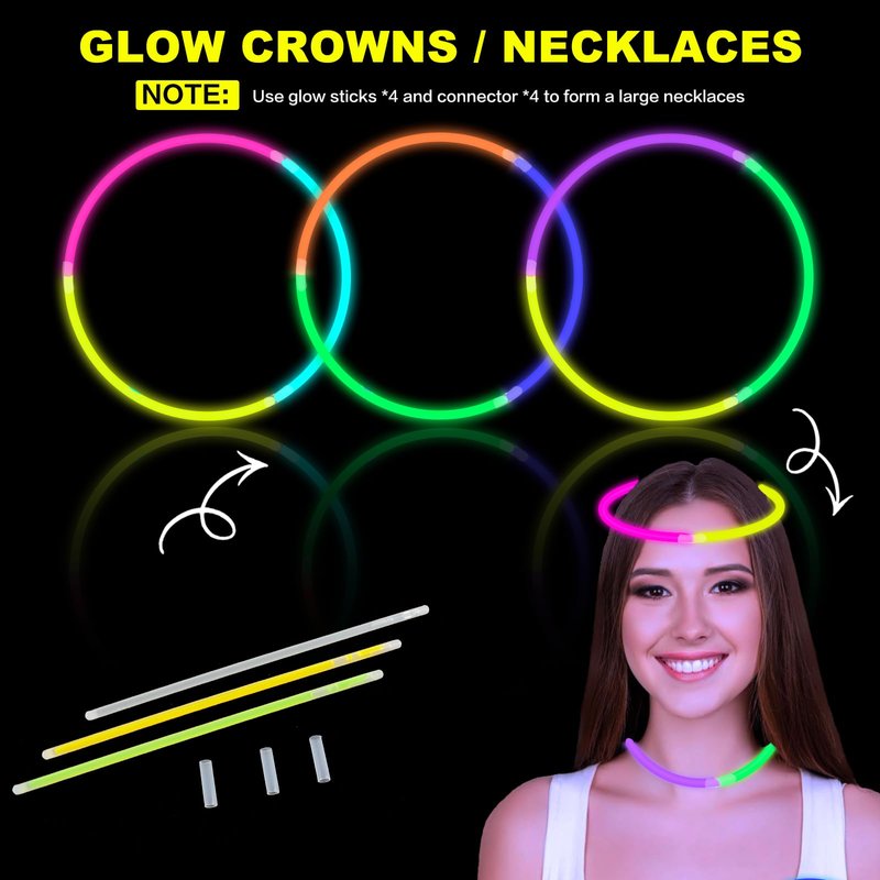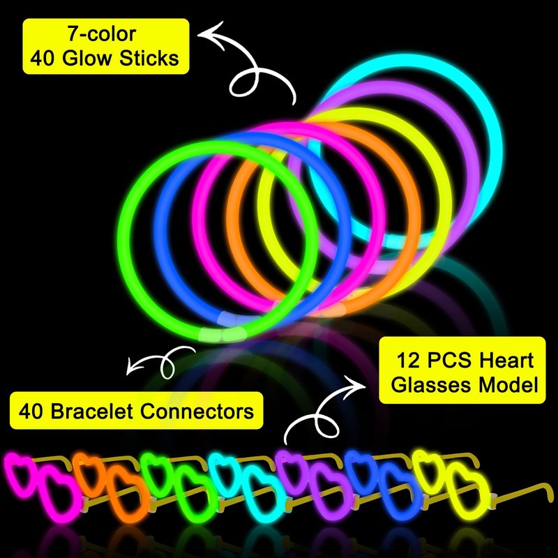 - Glow in the Dark Favors - This pack includes 40 glow sticks, 12 glasses, and 16 bracelet connectors. You can assemble 12 PCS glow glasses and 16 PCS bracelets, making them perfect for Christmas and New Year’s Eve celebrations!