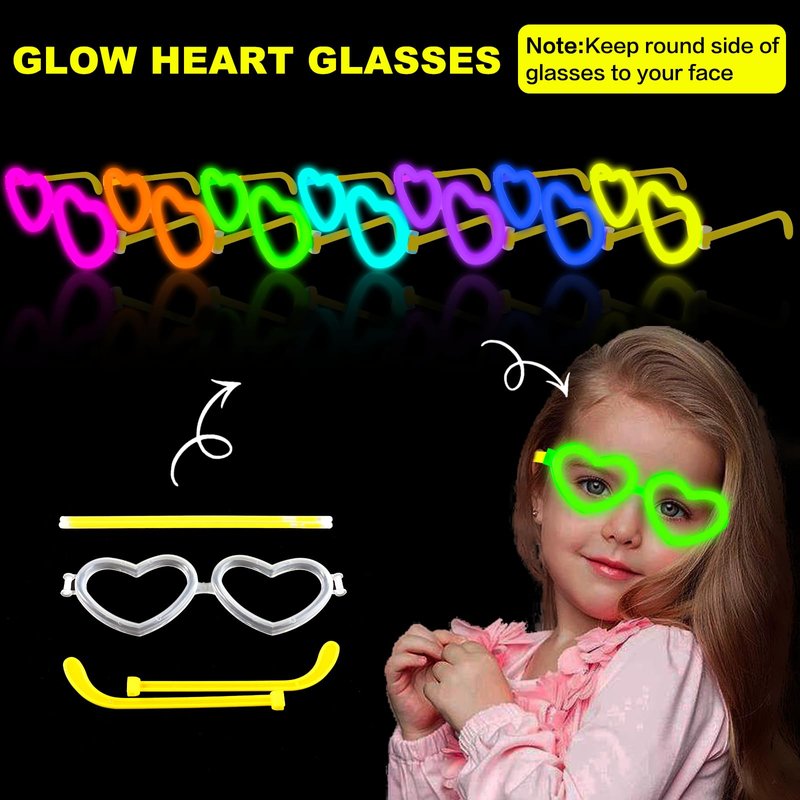 - Light-Up Glasses - Activate the sticks and insert them into the grooves of heart glasses. Great for glow birthday, camping, dance, and festive celebrations!