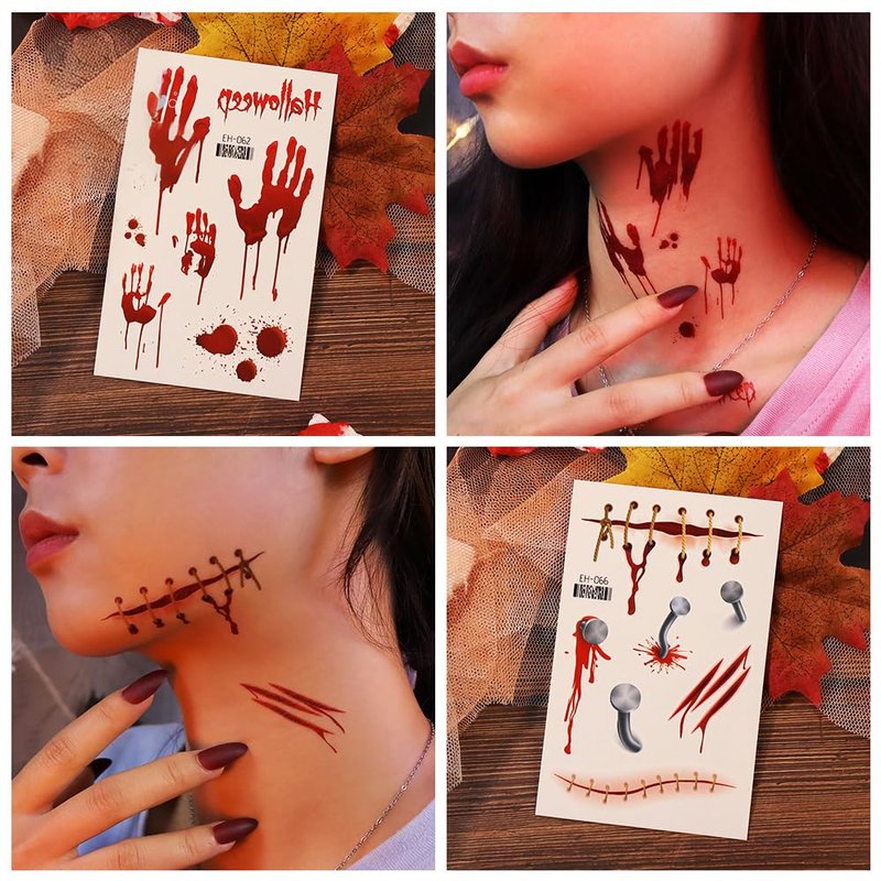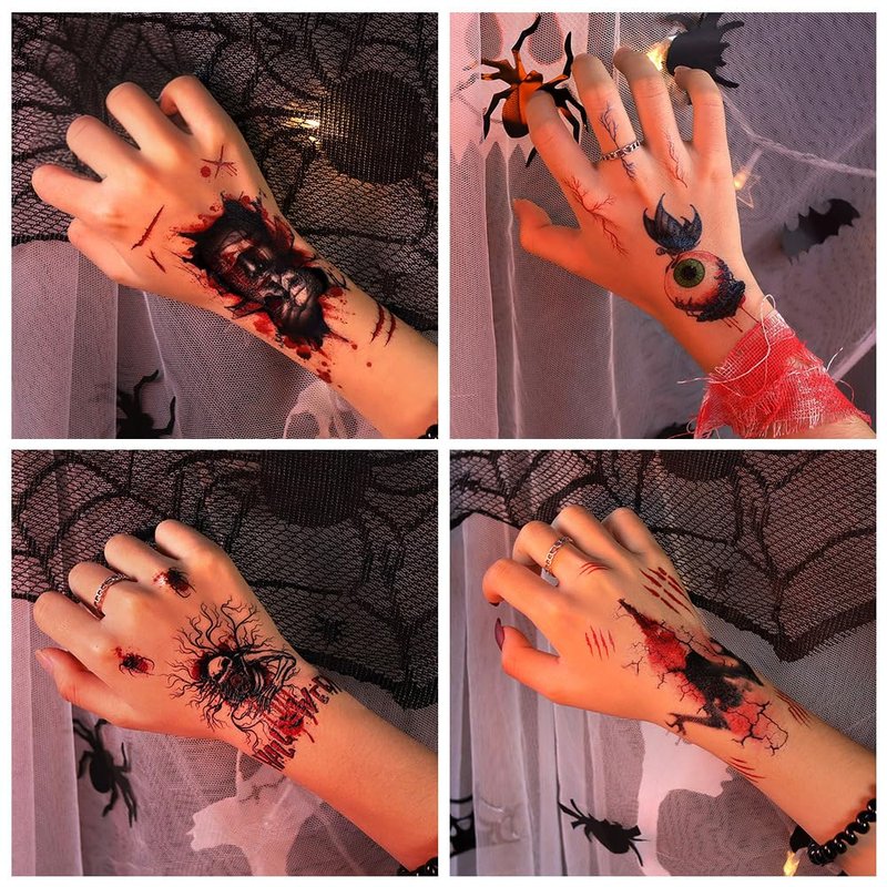 - POPULAR HALLOWEEN ACCESSORY::-- This set is a must-have for Halloween parties, cosplay events, or any spooky-themed gathering. As a Halloween best-seller, these tattoos are sure to be a hit with everyone.