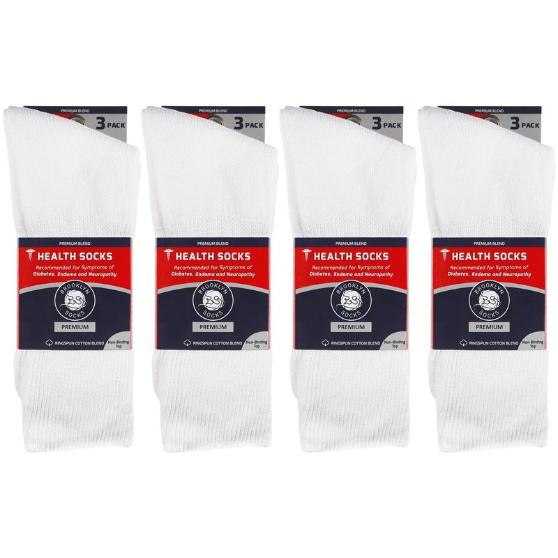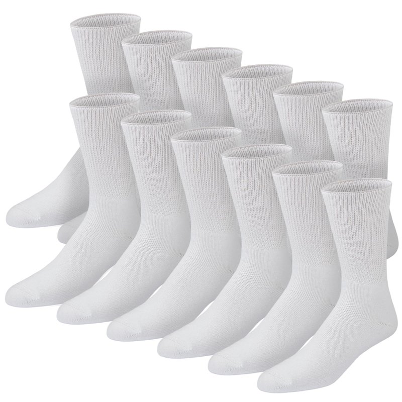 12 Pairs of Premium Cotton Loose Top Diabetic Neuropathy Crew Socks (10-13, White)