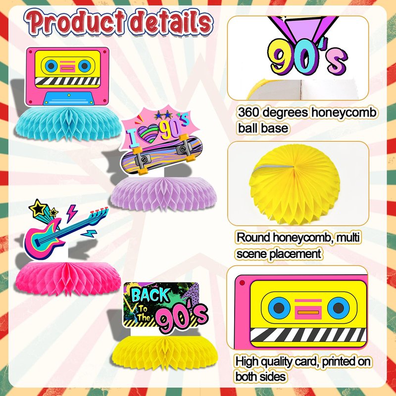 - 【Quality Materials】: 90s retro honeycomb centerpieces are made of high-quality cardboard and base, beautifully printed, non-fading, no odor, bright colors, and reusable.