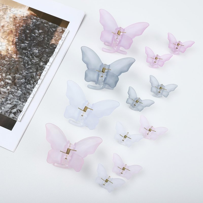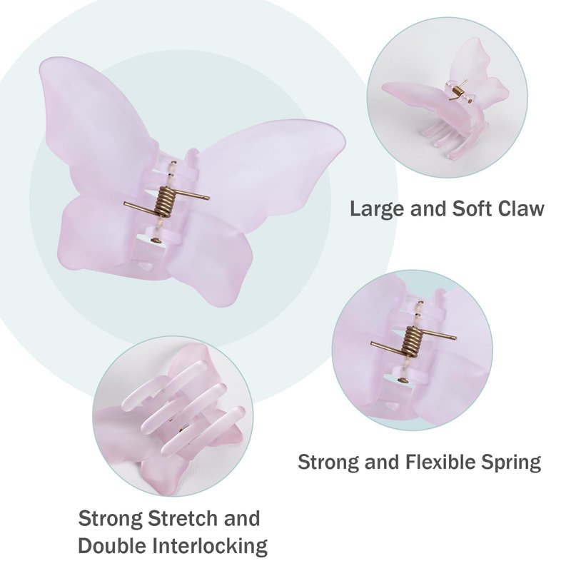 - ❤ 【Package Included】-You can get 12 frosted butterfly hair clips in 2 size and 4 different colors which is pink,purple,gray, white. It's a good chioce to decorate and match with jeans,suits,skirts and other different styles of clothes. The hair claw clips is packed in a exquisite pink gift box, they are wrapped with double-layer package protection to make sure hair clips' safety during delivery.