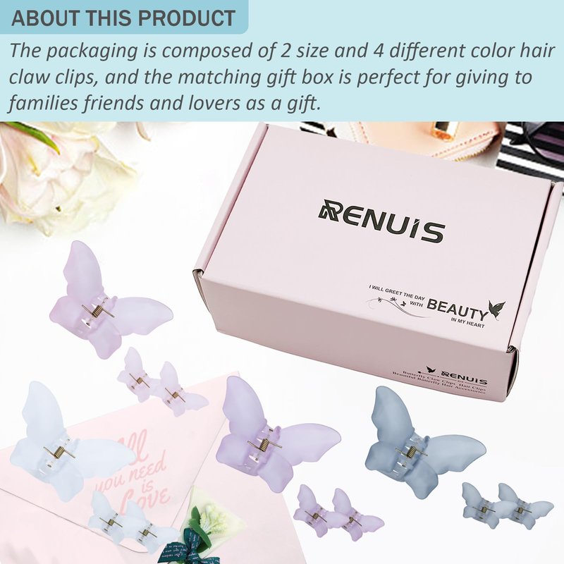 - ❤ 【Ideal Gift】RENUIS butterfly claw clips for thick hair are ideal fashion accessories for your mom, wife, girl friends, friends, etc. And great for girls, teen girls, young lady and women, they are so cute and make a fun addition to any outfit. It is also a warm gift for friends and family on birthday/Mother's day/Valentine's Day/Thanksgiving Day/Christmas/New Year.