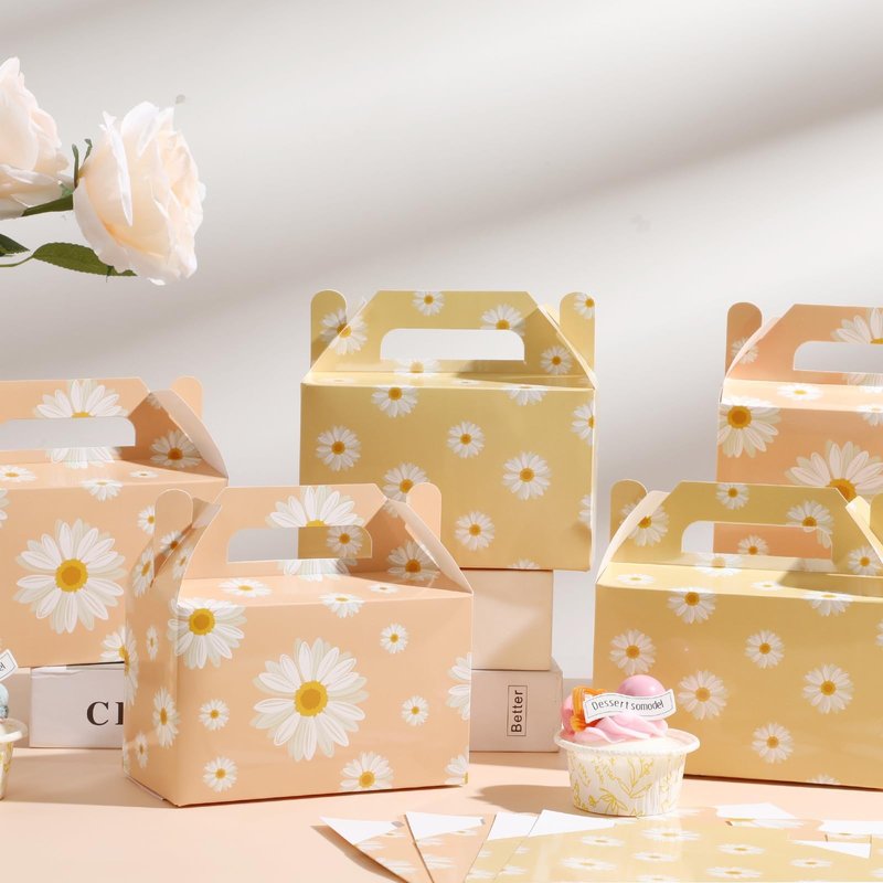 - High quality: Boho daisy flower theme paper boxes are sturdy, durable & reusable with cute bear face printed. Our Retro daisy flower treat boxes with handle are made of high quality craft paper, no smell, light carrying and environmental friendly.