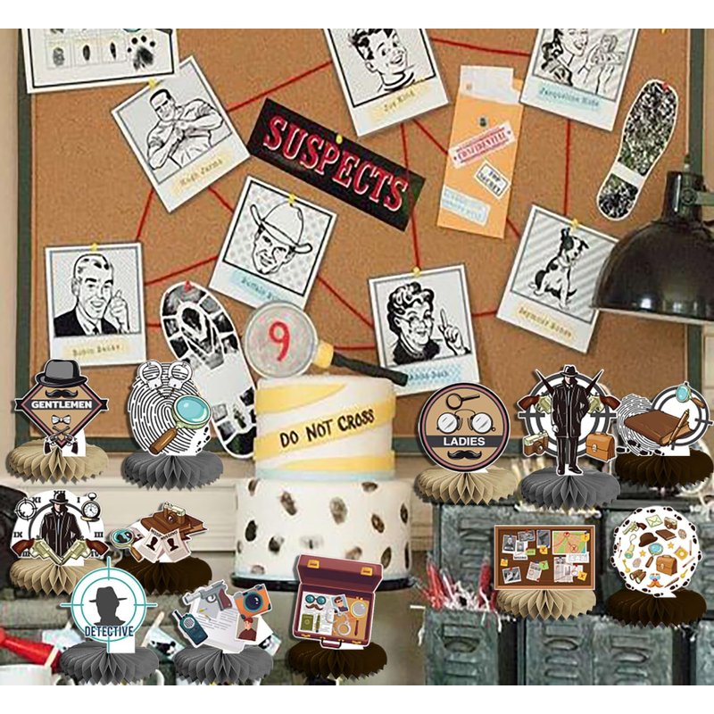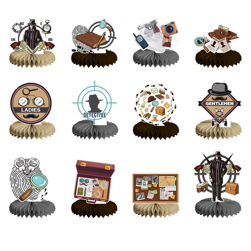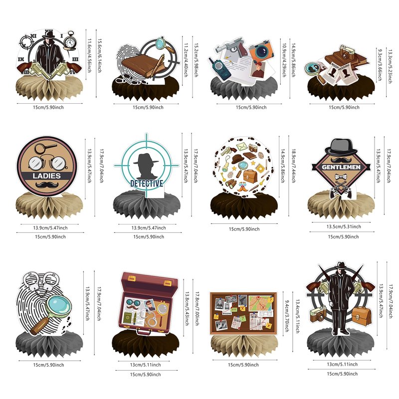 - Detective Table Decorations: Package includes 12 pcs detective honeycomb table centerpieces, contains 12 patterned cardboards and 12 paper honeycombs. Perfect for detective themed parties, mystery parties.