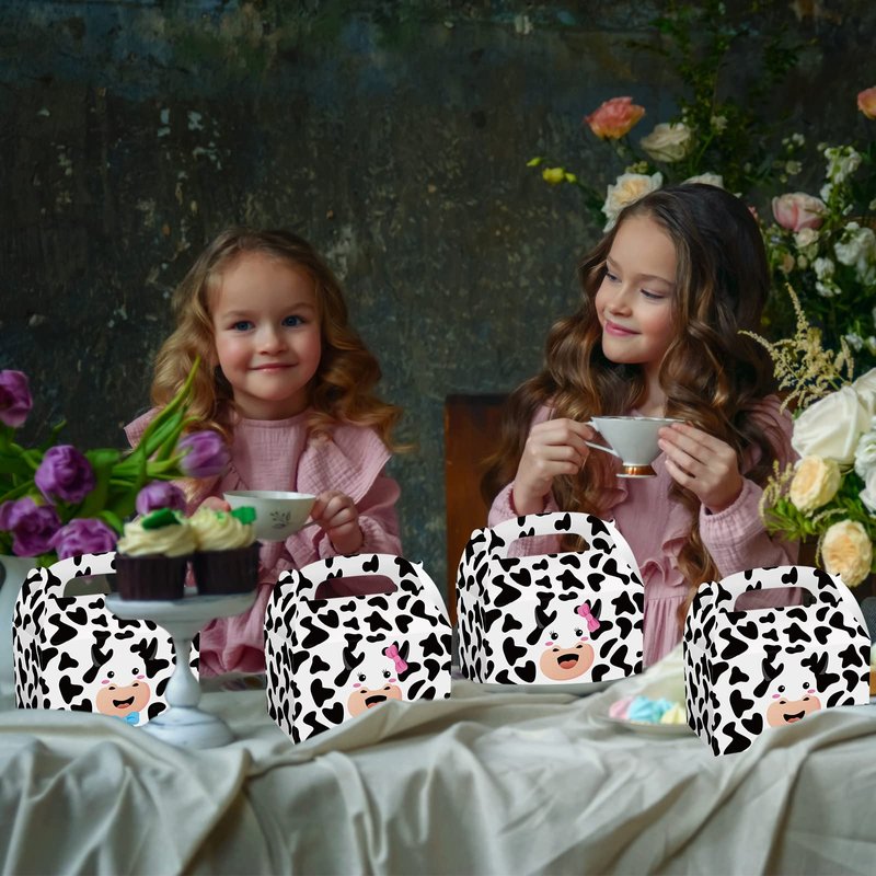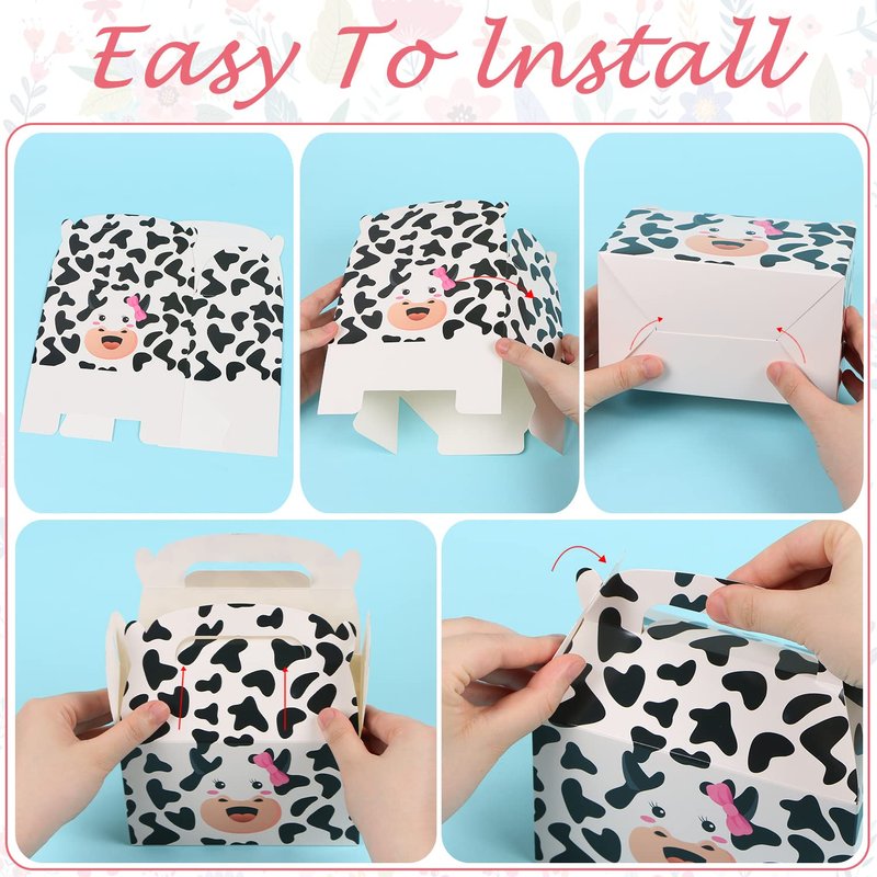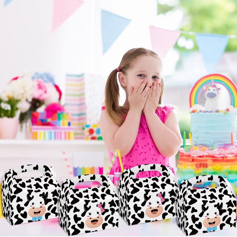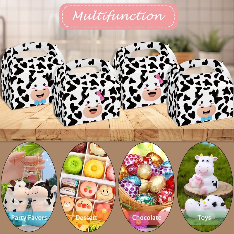 - ❤ Cow Theme Design - The cow print party gift boxes for boys girls is not just for party favors, can also be used to hold party candies, cookies, chocolates as party table decorations and for all your partners to enjoy!