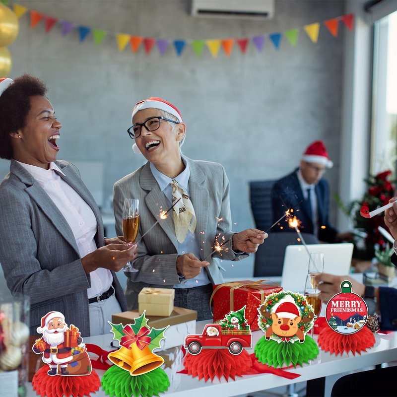 - wide occasions: these christmas centerpiece table decorations are especially suitable for merry friendsmas party, holiday party, xmas winter holiday party, merry christmas family party and other theme parties. you can place the friendmas centerpieces on the table to be decorated, or you can hang it with a clip. also you can share the friendsmas decor table honeycomb centerpieces with coworkers and friends