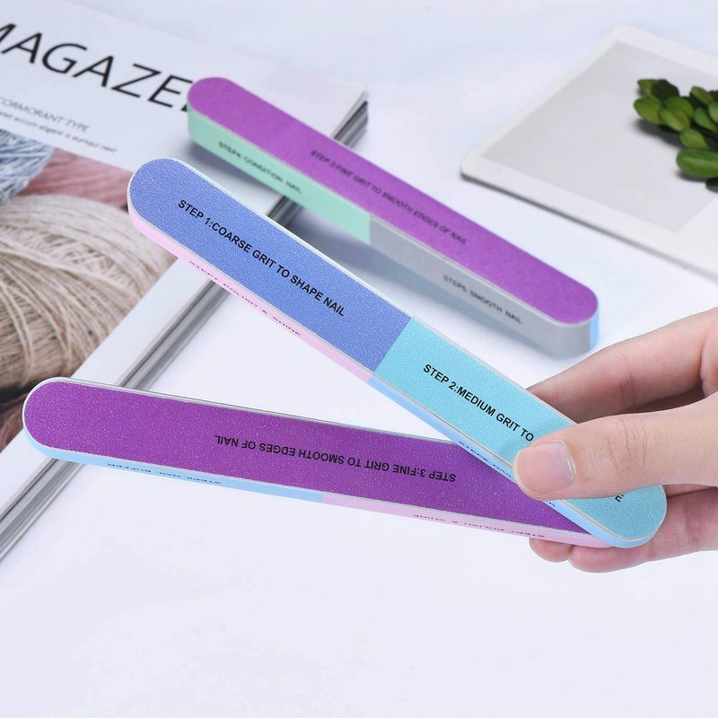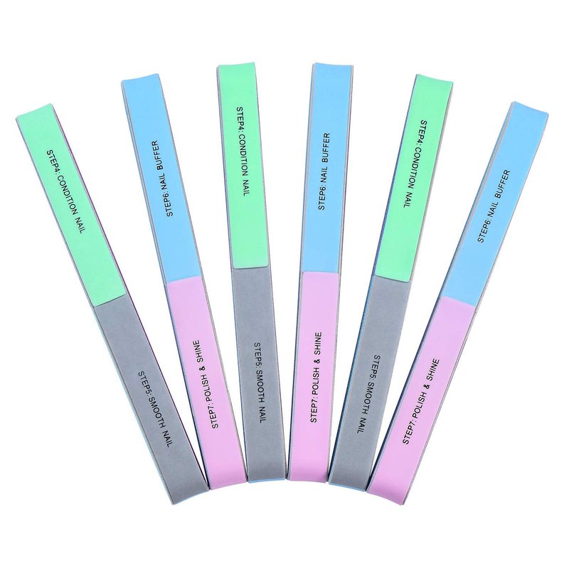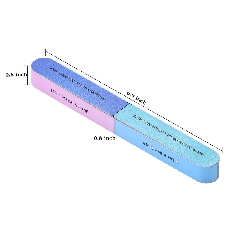 - Use step-by-step: Each side is numbered for the order to use and shows the function of each surface. Step 1 & 2 - Coarse and Medium Grit to shape nail. Step 3 - Fine Grit to smooth edges of nail. Step 4 - Condition nail. Step 5 - Smooth nail. Step 6 - Nail buffer. Step 7 - Polish and shine.