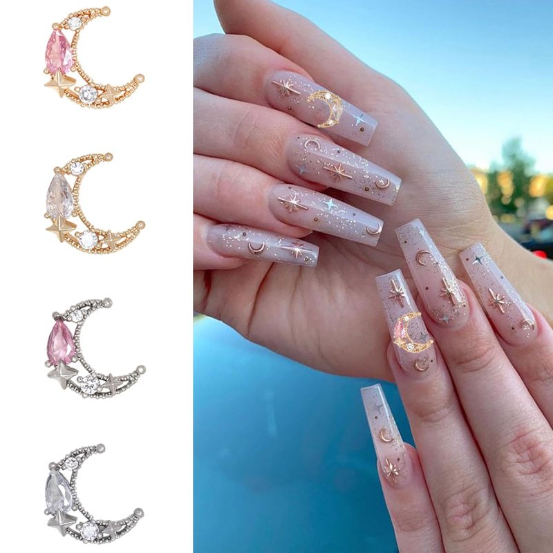 4. These silver gold moon nail gems look shiny and exquisite, both sweet girls and cool girls can handle them.