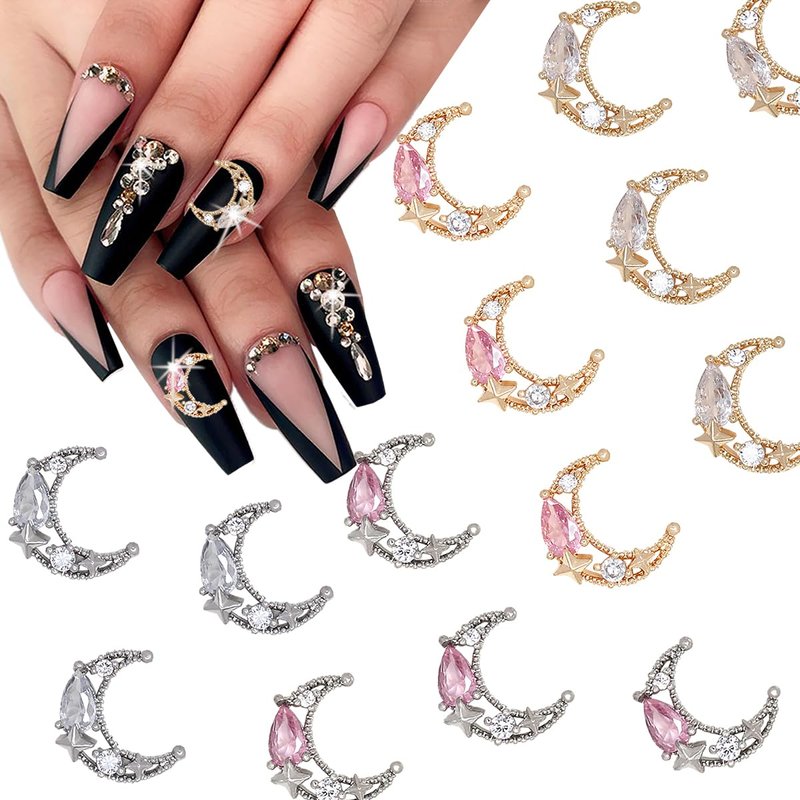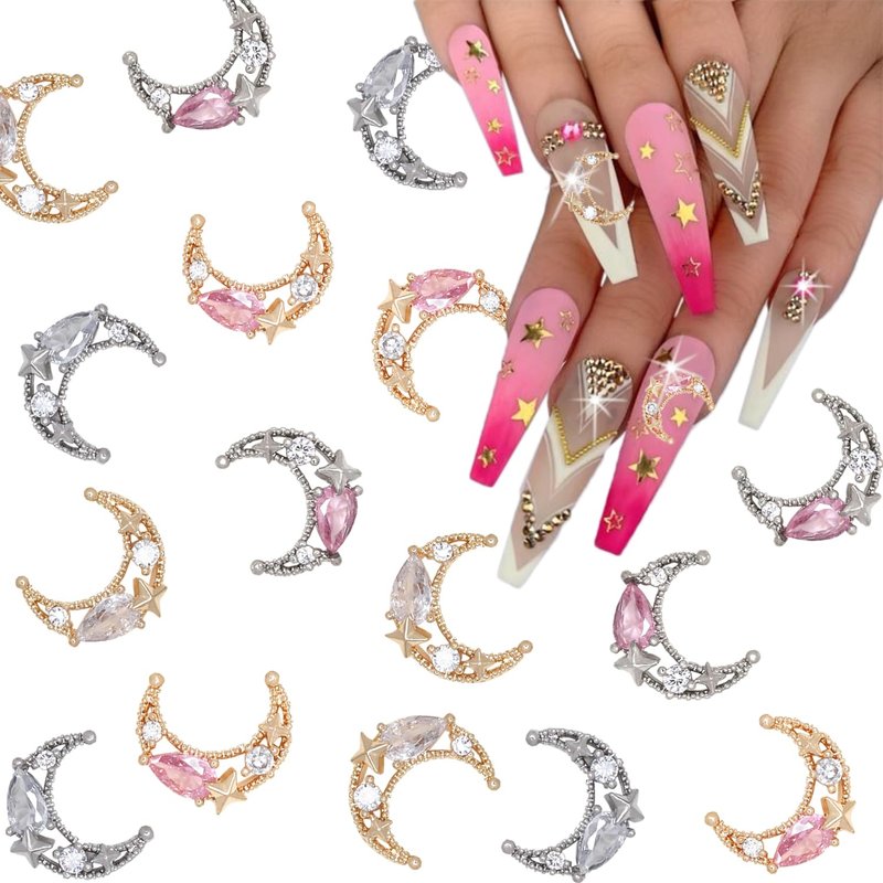 - 【Easy to Use】 These alloy moon rhinestone ornaments are suitable for natural or artificial nails, just clean the surface of your nails, put them on your nails with glue, then apply a layer of top coat for nails and cure, which is very simple and suitable for professionals and beginners alike.