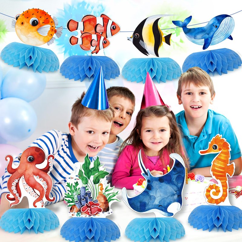 - OCEAN THEMED DESIGN : This ocean animal party decoration features 12 different sea creatures, such as sea turtles, crabs, sea fish, seahorses, octopuses, as well as seaweed and coral. They create a captivating ocean world atmosphere, fulfilling children's longing for the sea.