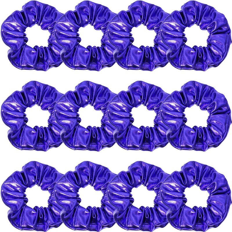 Set of 12 Cheer Glitter Hair Scrunchies Metallic Leather Ponytail Holder Hair Accessories for Cheerleading Teen Girls College Sports