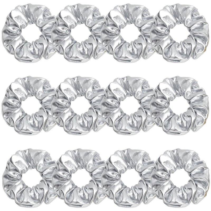 12 Pcs PU Leather Cheer Hair Scrunchies Gold Scrunchy School Performance Ponytail Holder Hair Accessories for Cheerleading Teen Girls College Sports (Silver)
