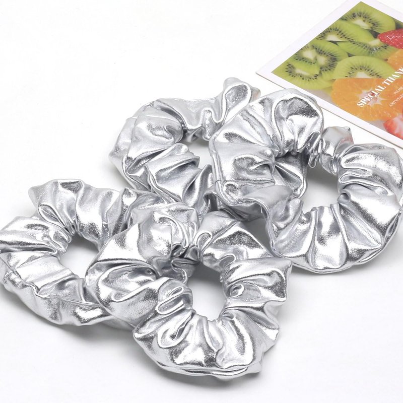 - This shiny cloth scrunchies set looks like Metallic, we use special technology, it's make the band hard to crack.