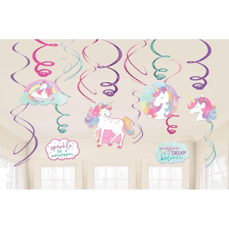 - Whimsical Unicorn Design – Brighten up your party with these 12-piece rainbow unicorn ceiling streamers, adding a magical touch to any unicorn-themed birthday celebration.
