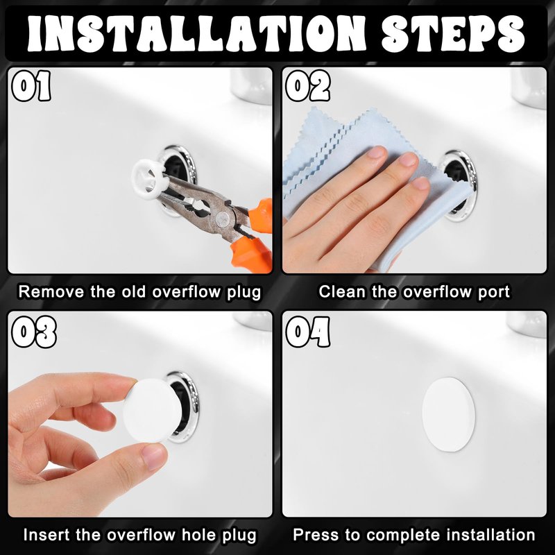 - 【Package Includes】Each pack contains 12 overflow drain cover.Sink hole cover providing ample replacements or spares for multiple sinks. The bathroom sink cover are reusable and easy to clean, ensuring they remain effective and hygienic over time.