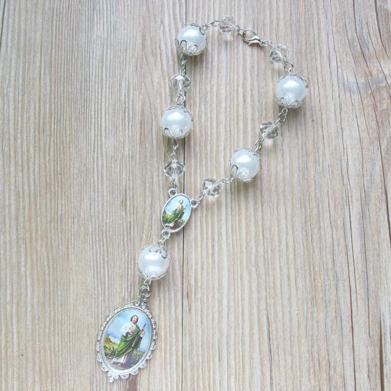 - 12 Pcs Saint Jude Rearview Mirror Car Auto Rosary Favors for Baptism