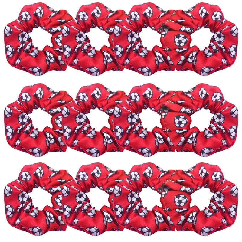 12 Pcs Shiny Soccer Hair Scrunchies Cheer Soccer Uniforms Scrunchie School Performance/Sports/Practice/Party/Gymnastics Scrunchie Ponytail Holder Wrist for Girls Cosplay Show (Red)