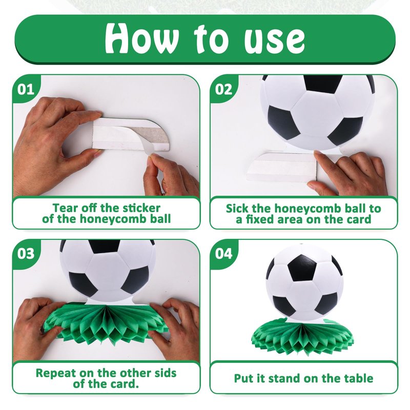 - ⚽⚽【What You Will Receive】: You will receive a soccer - themed honeycomb centerpiece set, which includes 12 soccer honeycomb centerpiece cards (7.56×7.87 inches) and 12 black and green honeycomb centerpiece bases, which are sufficient in quantity to meet various party needs.