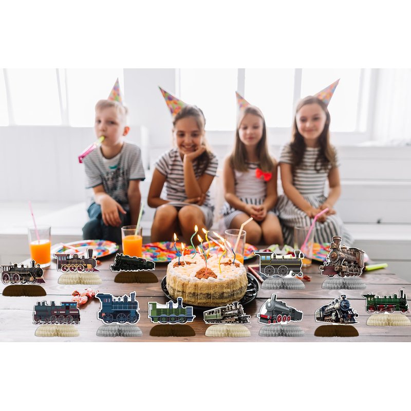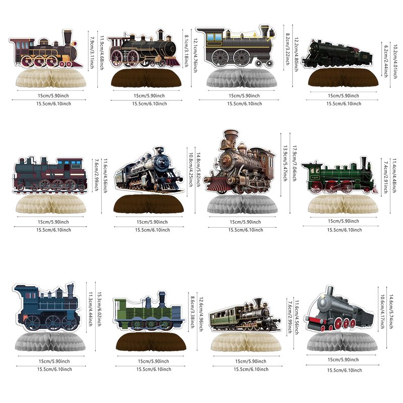 - Train Table Decorations: Package includes 12 pcs train honeycomb table centerpieces, contains 12 patterned cardboards and 12 paper honeycombs. Perfect for train themed parties.