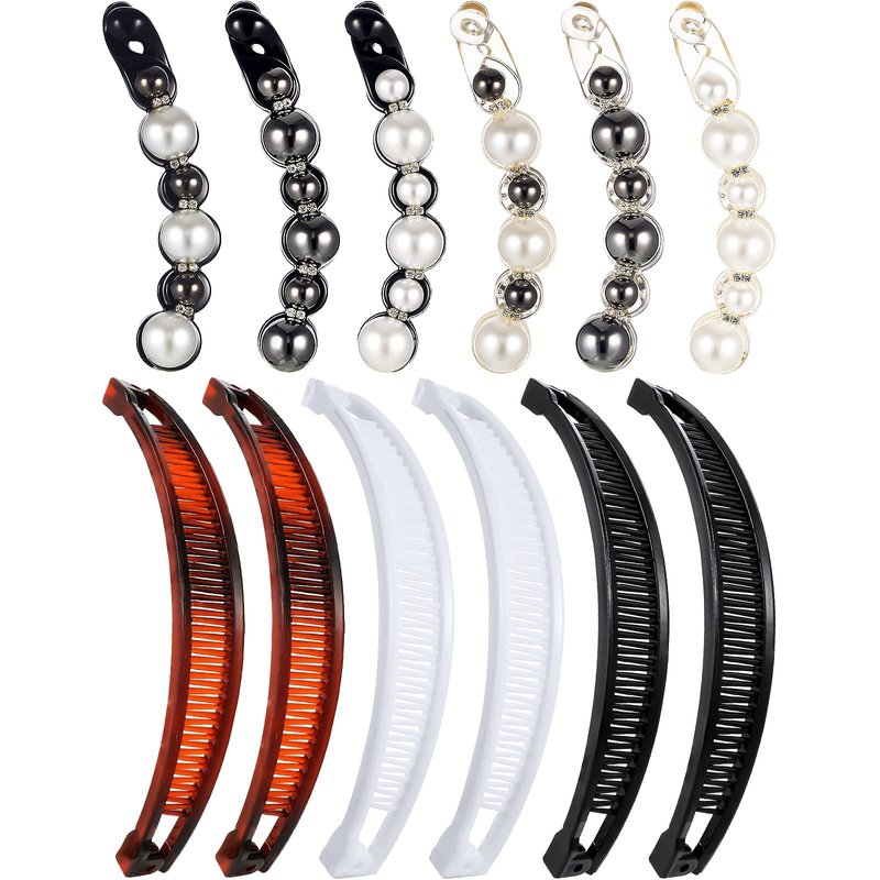 - Package quantity: comes with 6 pieces pearl hair clip clamps in 6 different colors and 6 pieces retro banana hair combs in 3 colors, different colors and shapes make them easy to match your outfit, nice and strong, grip hair really well, good for keeping your hair tidy and making you look elegant
