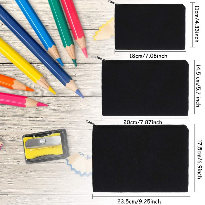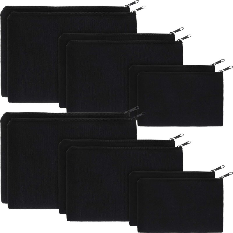 12 Pieces Canvas Cosmetic Bag Multipurpose Cosmetic Pouch Zipper Makeup Bags Blank Make Up Purse for Women Travel Organize Storage, Multi Sizes (Black)