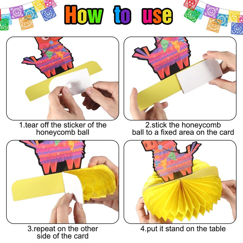 - Convenient to Assemble: the Cinco de Mayo table centerpieces are very simple to assemble, just stick the honeycomb paper flower with glue, and then put the card into the honeycomb paper flower to complete the assembly, and you can directly use the exquisite and beautiful Mexican party centerpieces for tables