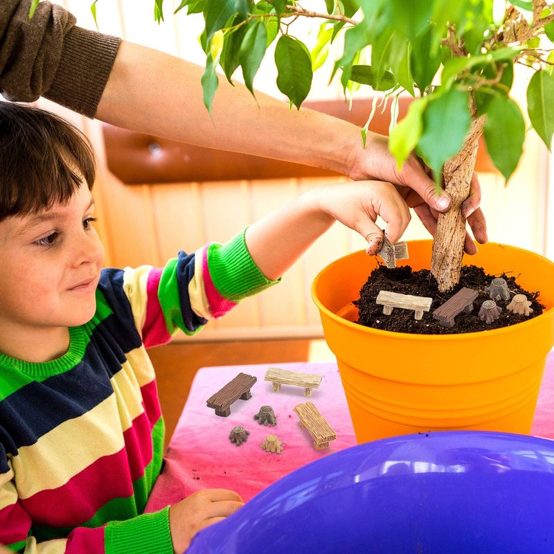 12 Pieces miniature garden ornaments, includes 6 pieces retro wooden style benches, 6 pieces artificial mini root stump for moss terrariums landscape dollhouse accessories decorations Features: Adorable gift: Just share these miniature garden decoration set with friends, family, classmate, colleague, or close neighbor on birthday, Christmas, Thanksgiving or house warming party, making them feel your love and concern. Widely applied: Dollhouse accessories decorations are ideal supplies for mini garden, desk decor, furniture decoration, DIY painting stuff, home decoration, animal theme party accessories and more, suitable for any miniature garden, terrarium, container, plant pot, dollhouse and shadow box scene to build a fairy world. Specifications: Color: as shown in the pictureVintage bench material: polyresinRoot stump material: resinRoot stump size: about 1 x 1 x 0.35 inch/ 2.5 x 2.5 x 0.89 cm (LWH)Vintage bench size: about 2.5 x 1.5 x 0.7 inch/ 6.35 x 3.8 x 1.78 cm (LWH)Package includes: 6 Pieces of mini benches6 Pieces of mini root stumpNote: Manual measurement, please allow slight size error. Small parts included, please keep them out of the reach of children under 3 years old, adult supervision is required.