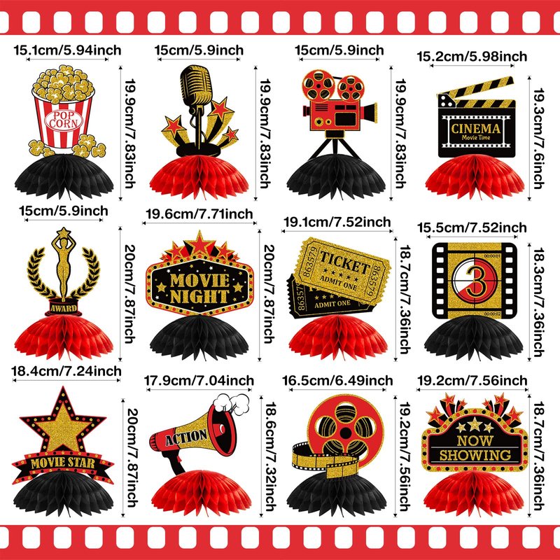 - Proper Size: these movie centerpieces are about 8.3 x 7.9inches, which match with most tables and can add an elegant atmosphere to the graduation party by setting them on the table; These movie theater decor are impressive enough to be noticed, yet not too tall or big that guests have trouble seeing or talking with each other