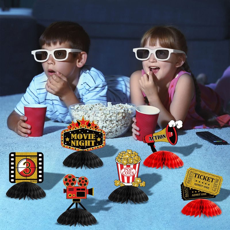 These movie theater party decorations can be applied as table, home or classroom party decorations, photo props or DIY kits. The pretty design and variety of pieces make this centerpiece an impressive addition to any movie theme party.