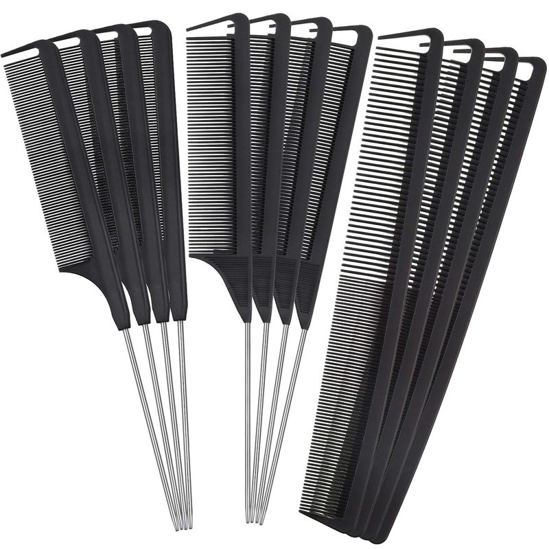 12 Pieces parting comb for braids rat tail comb steel pintail comb fine teeth comb heat resistant teasing combs with stainless steel pintail