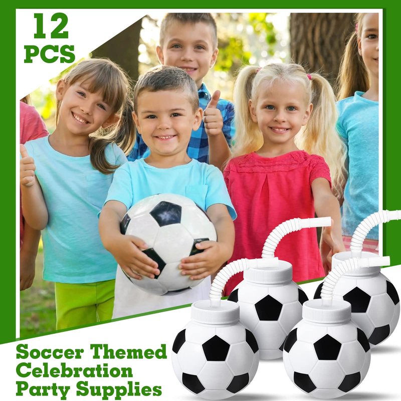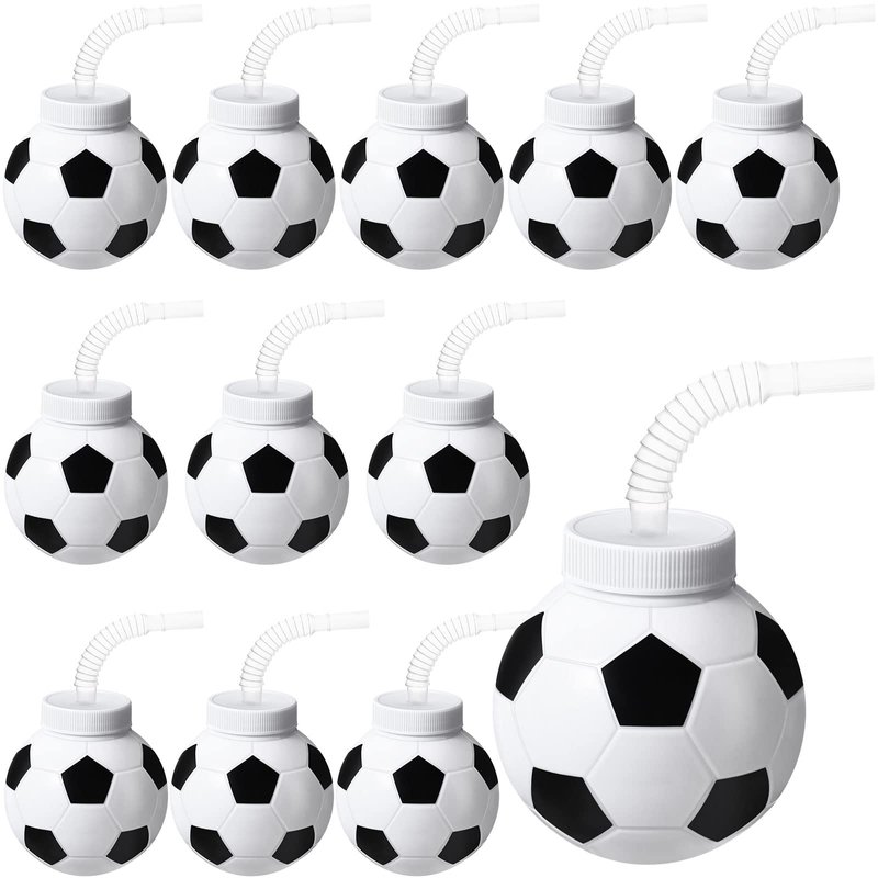 - Soccer Ball Shape Cup Set: you will receive 12 pieces of plastic soccer ball cups with lids, 12 pieces of clear plastic straws, sufficient quantity for daily use or party supplies, and can also as a gift to share with friends