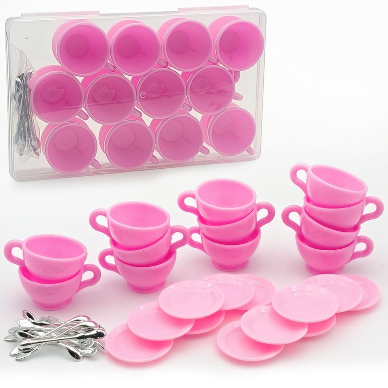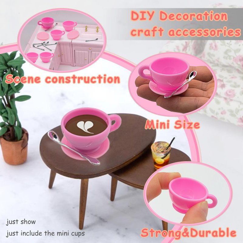 12 Sets Mini Coffee Cups Mini Dollhouse Cups Miniatures Tea Cups Food Kitchen Toys for DIY Decoration Craft Accessories (Pink)