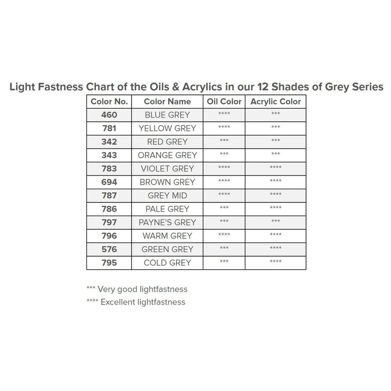 - Features: 12 different shades of grey in a set of 12 or individuAlly, Highly Pigmented, triple-milled Colors, Set Includes 12 x 21ml tubes, Individual acrylic Paint tubes sold in 75ml tubes, Very rich Color, great coverage & consistent Color