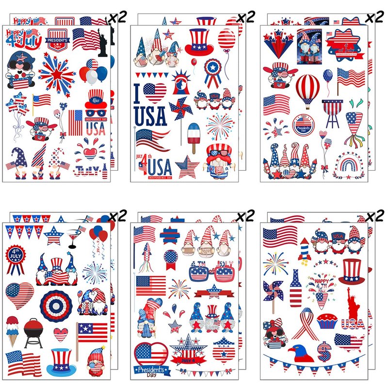 - 4th of July Party Favors: The package comes with 12 sheets different 4th of July tattoos stickers, enough for sharing with your friends or family; These 4th of July temporary tattoos will add more fun to your Independence Day-themed birthday party, making your party more attractive and leaving a deep impression on your guests.