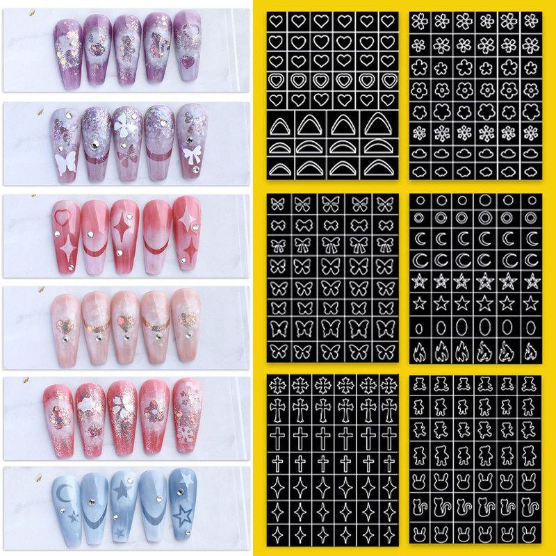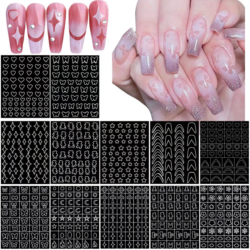 - 【Nail Stencils】You will get 12 sheets airbrush stencils nail stickers, beautiful 3D butterfly flower heart moon star cross french stencils template , sufficient quantity, styles and tool can satisfy your daily decorative demands, will make your nails look more charming,with your appearance for various occasions.