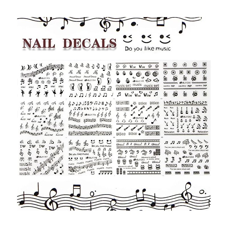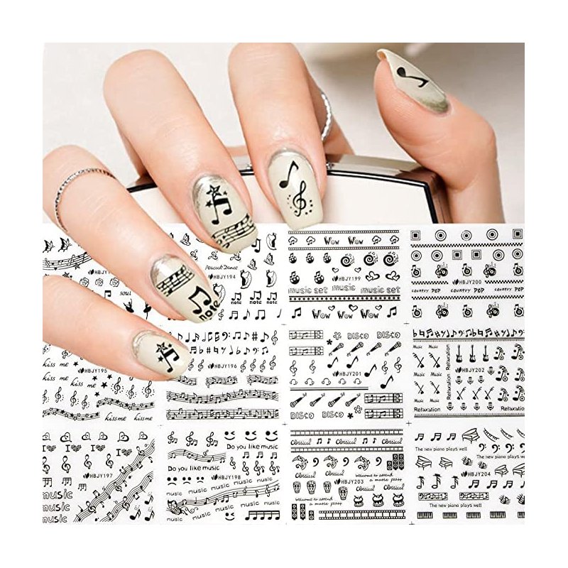 - 【What You Will Get】You will receive about 350 pieces black music nail sticker in 12 different styles,including black dancers, notes, smiley faces, microphones, erhu, guitars and handmade drums, so feel free to mix and match your choices to create the style you want!