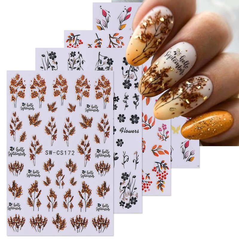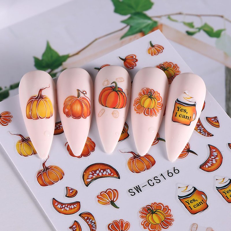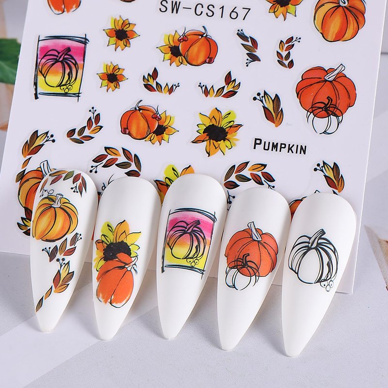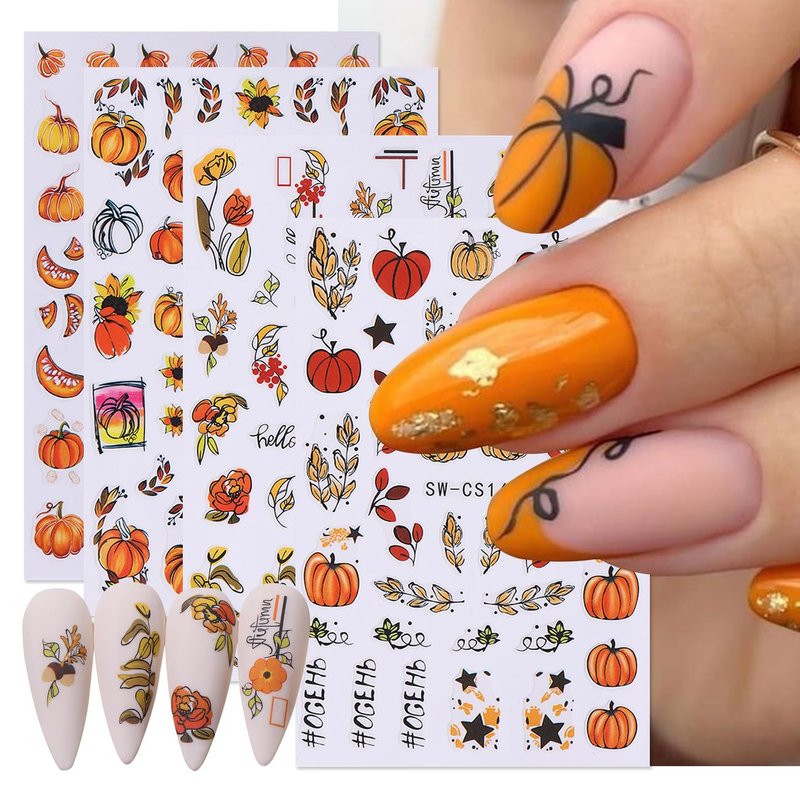 - Autumn Nail Art: Package includes 12 sheets of 3D maple pumpkin leaf nail art stickers. Autumn Thanksgiving nail decorations, lots of different patterns for you to use and replace in your daily life.