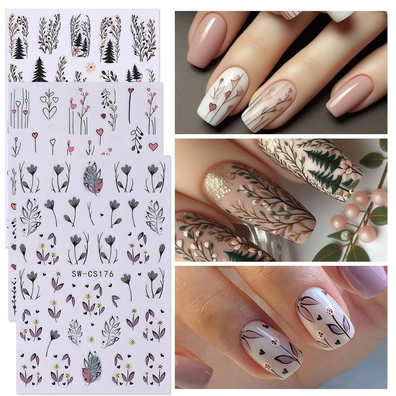 - Usage:The stickers are self adhesive and require no glue, simply use tweezers to peel off the stickers and stick the decals to your nails. You can also apply top coat coverage to keep the beautiful decals on longer.