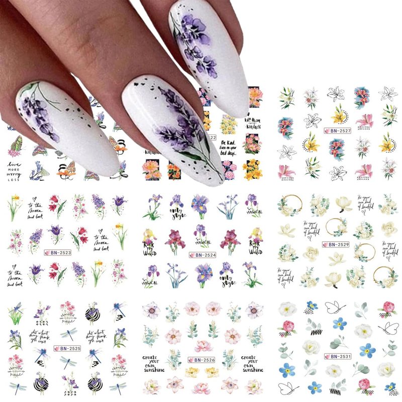 - 【Package Included】You will get 12 sheets flower nail art sticker, it contains a variety of flower and butterfly patterns, and you can design bold and fashionable nail art.
