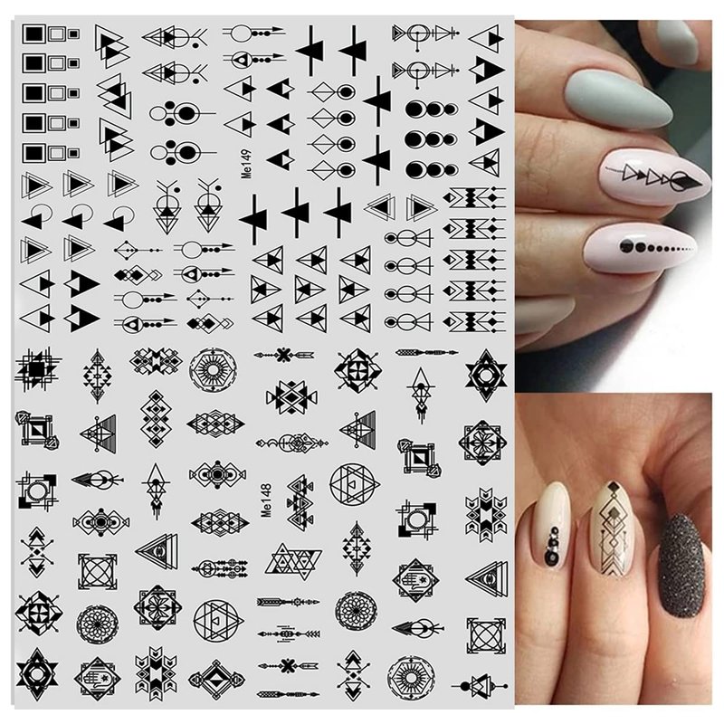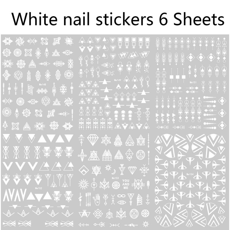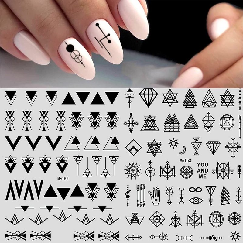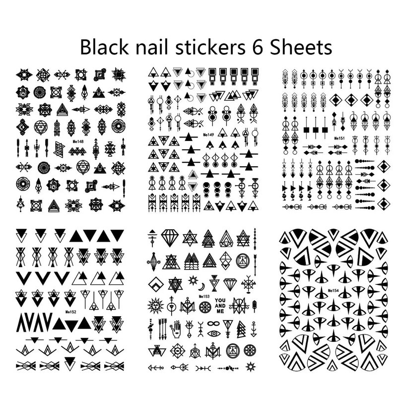 12 Sheets Geometric Nail Art Stickers Decals Self-Adhesive Pegatinas Uñas Black White Mysterious Triangle Nail Supplies Nail Art Design Decoration Accessories