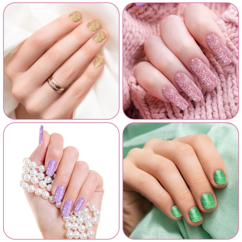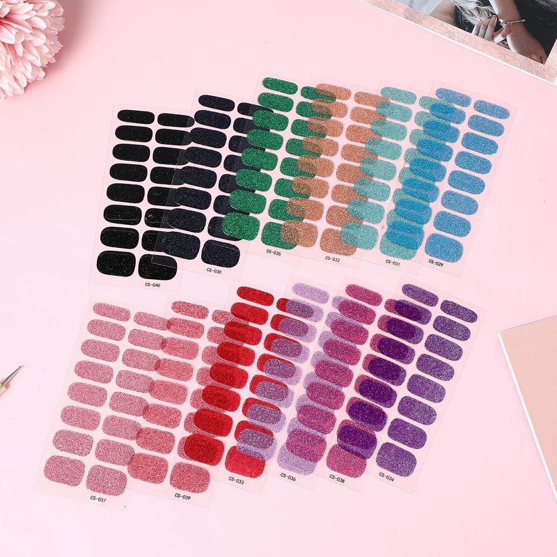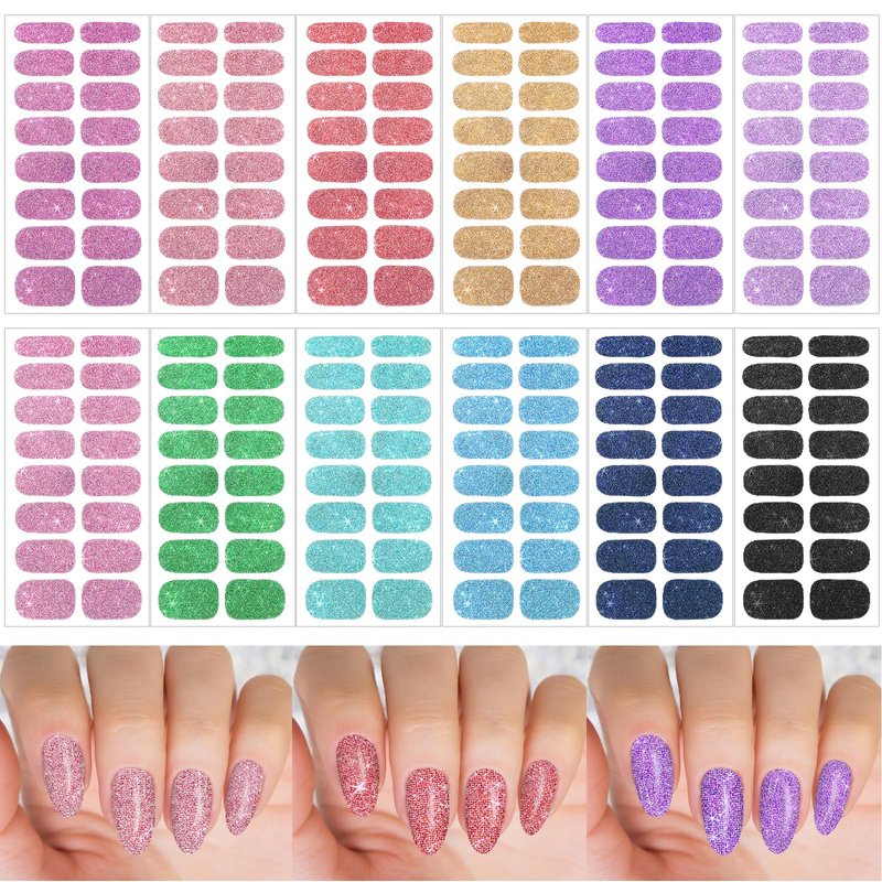 - 【Package List】This package contains 12 sheets of glitter nail stickers, 12 different colors of nail polish strips, 1 piece of each color, enough quantity to meet your different decoration needs, you can also share it with your friends and family.