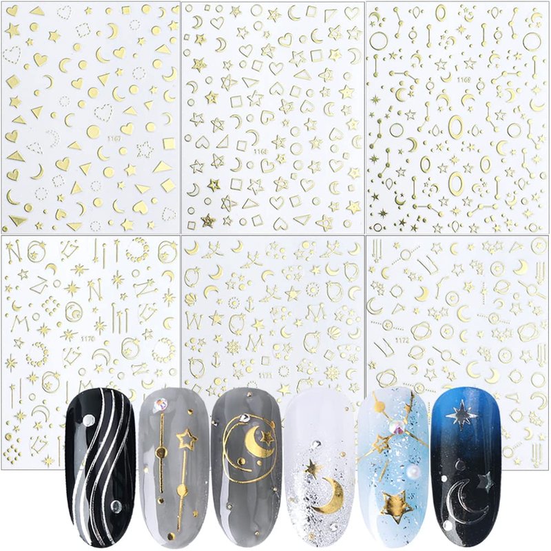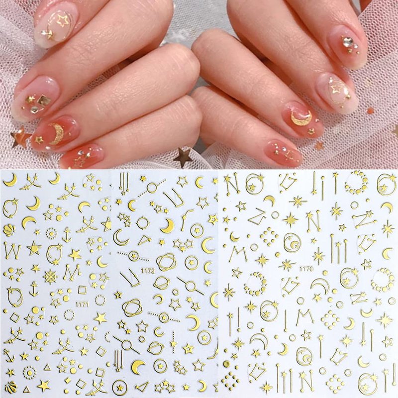 - Package: You will get 12 sheets 3D Gold Silver nail art stickers decals, Stars Moon Heart nail designs decoration, It provides you with a variety of options to give full play to your rich imagination of nail DIY.