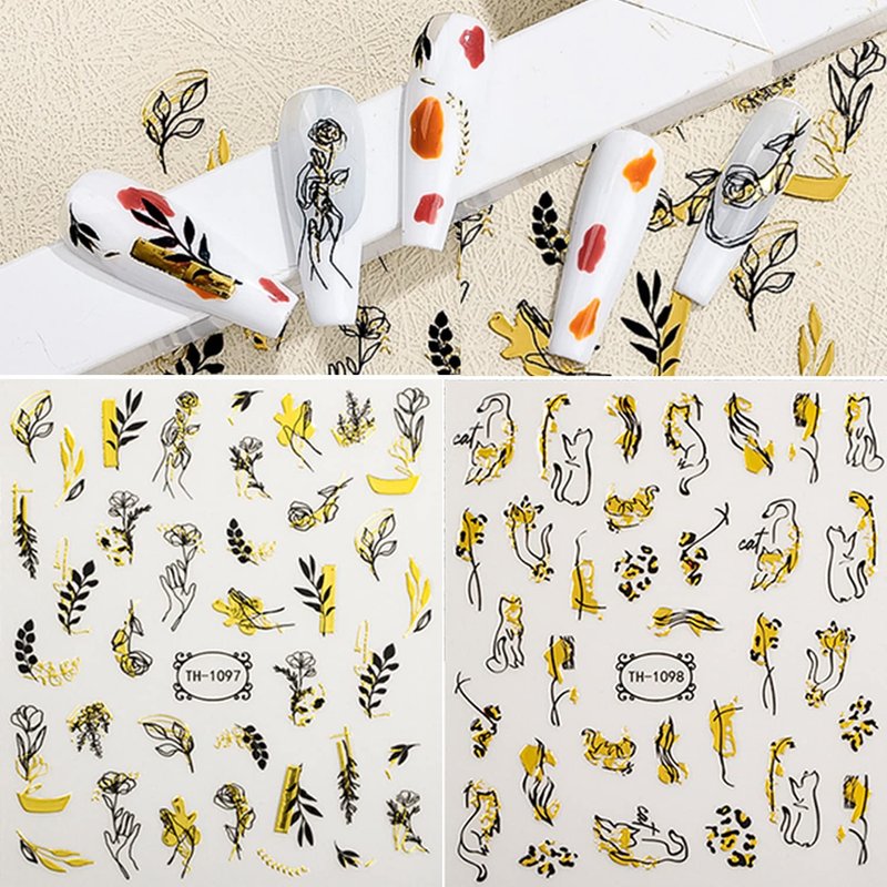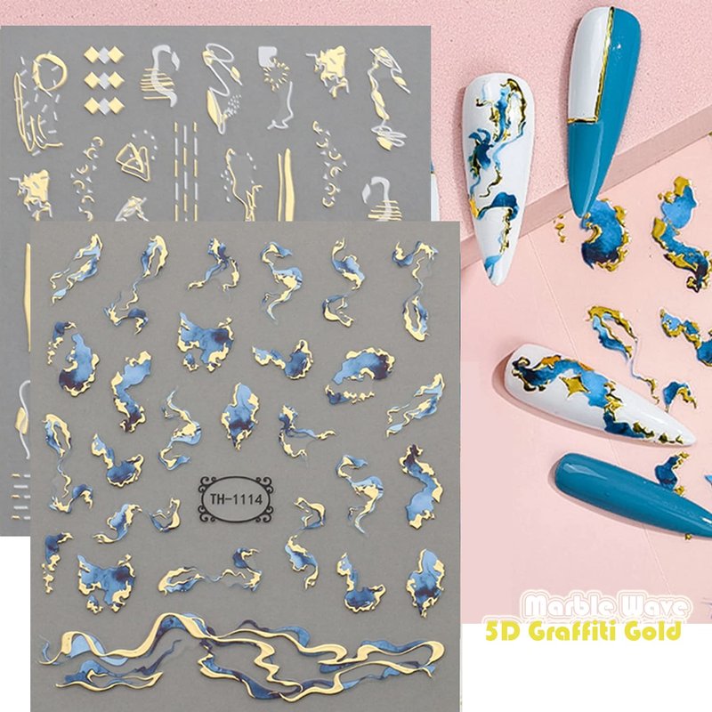 - 【Fashion Design】:The patterns have unique designs, including abstract Stripe Lines, Marble Waves ,Flowers, Leaves, & Cats which are fashionable to mix up with the 5D graffiti gold . Great for French manicure. Lets you get a different manicure every day
