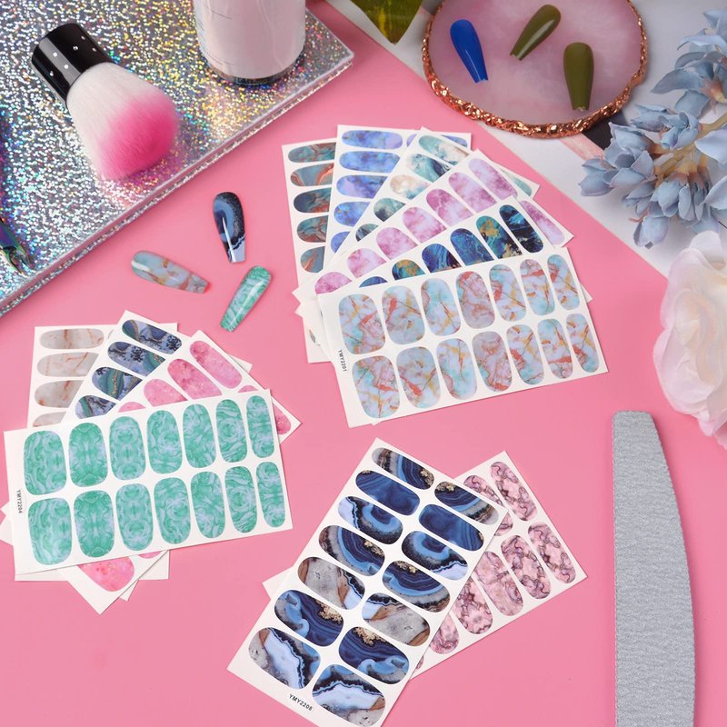 - 💓 Marble Nail Art Polish Stickers: 12 Sheets marble full wraps nail stickers and 1 pcs nail file. Each sheet accounts for 14 pcs nail art stickers in different styles and sizes. This nail polish stickers decal set will help you create unique nail art.