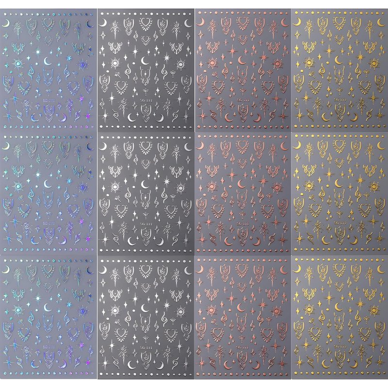 - Package: You will get 12 sheets 3d gold stars nail art stickers decals, stars moon heart nail designs decoration, It provides you with a variety of options to give full play to your rich imagination of nail DIY.